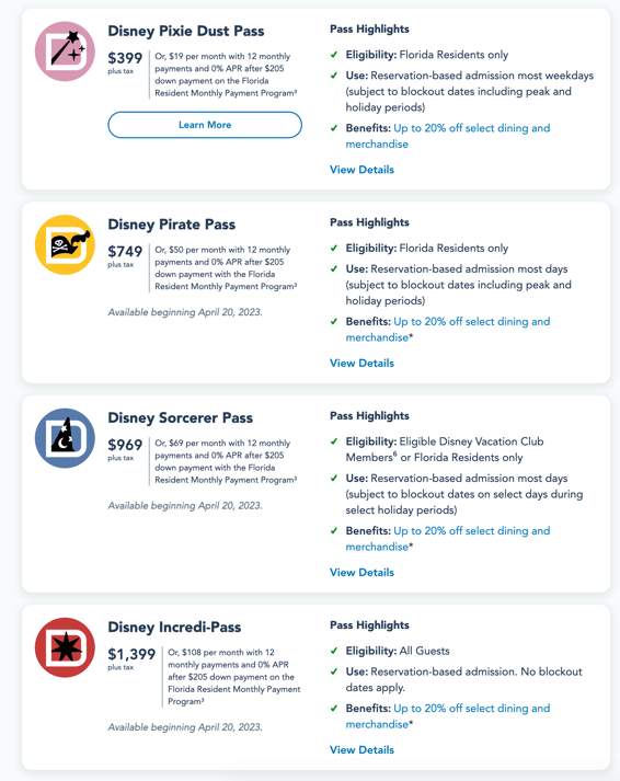 The Pixie Dust Pass remains exclusive to Florida residents. This annual pass gives Floridians access to Walt Disney World on most weekdays. It has remained available even as Disney has shut down sales of the other annual pass options.