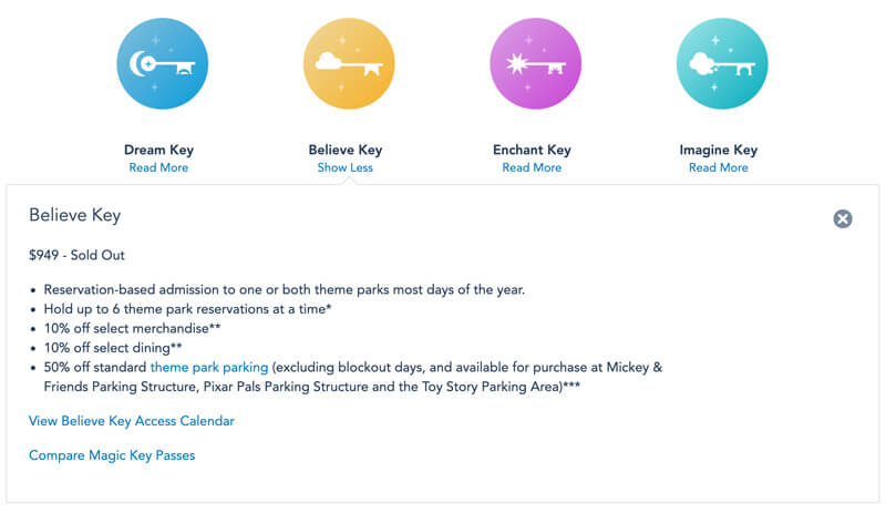 Now, Disneyland has suffered another setback. The Believe Key has sold out its allotment.