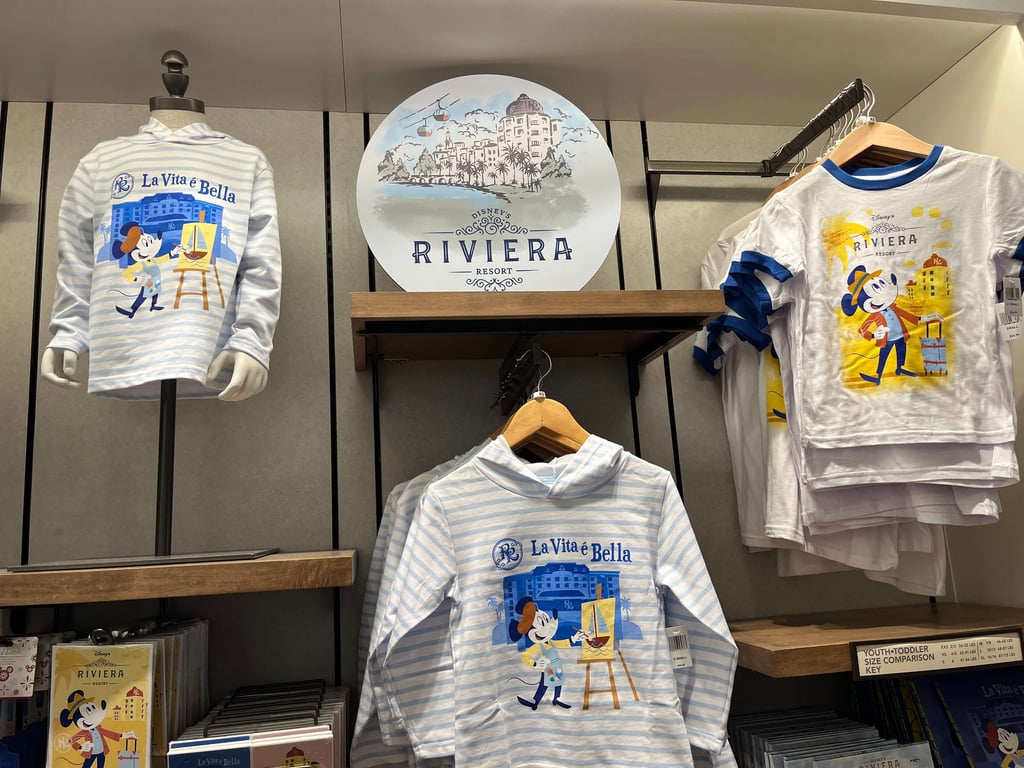 Riviera’s gift shop, La Boutique, is quite small in comparison to those at Old Key West and Saratoga Springs, but it still manages to offer a treasure trove of DVC merchandise. Here, you’ll find the current line of general DVC items as well as any seasonal DVC merchandise. There’s also a large selection of Riviera-specific merchandise from clothing to plushies of Mickey and friends in their Topolino’s Terrace outfits.