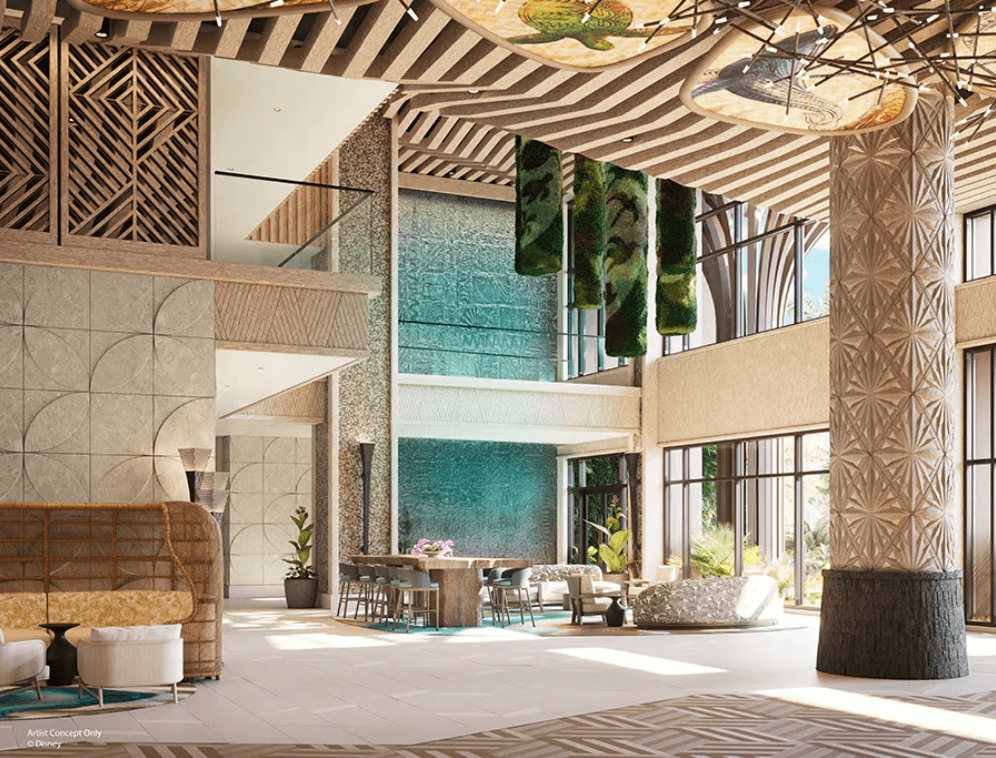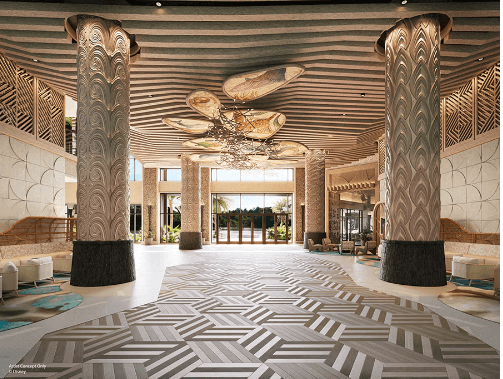 In terms of design, Disney put plenty of thought into the Island Tower’s art. The press release notes that “the striking waterfront retreat will immerse guests in the charm of the South Pacific islands, the thrill of exploration, and the beauty of the natural world.”