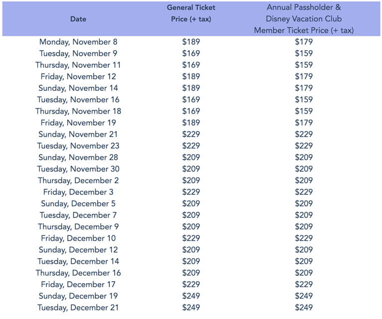 Disney indicates that annual passholders and DVC members may save $10 on select November dates.