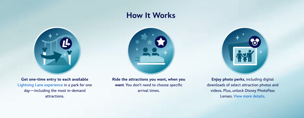 Then, we have the caveat that you cannot re-ride attractions with LLPP. Your purchase entitles you to front-of-line access once per attraction. Afterward, you can obviously stand in the regular line and experience something multiple times. But you may only enter the Lightning Lane queue once.