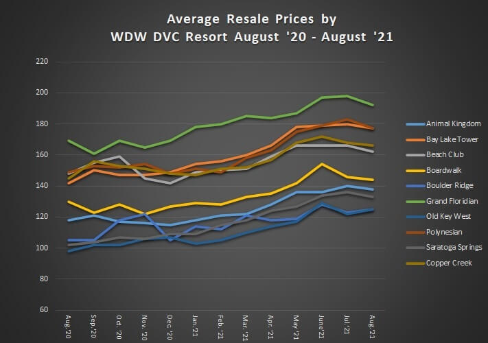 DVC Resale Average Sales Prices for August 2021