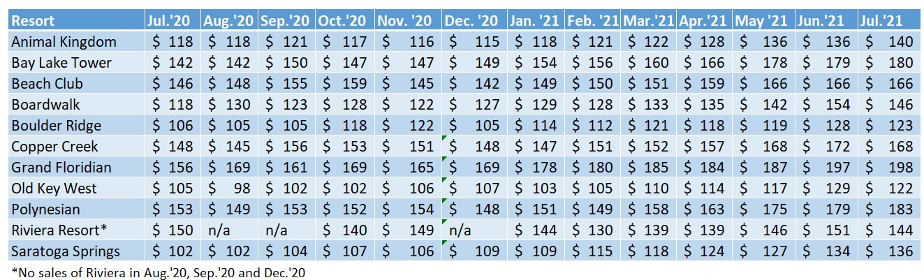 DVC Resale Average Sales Prices for July 2021