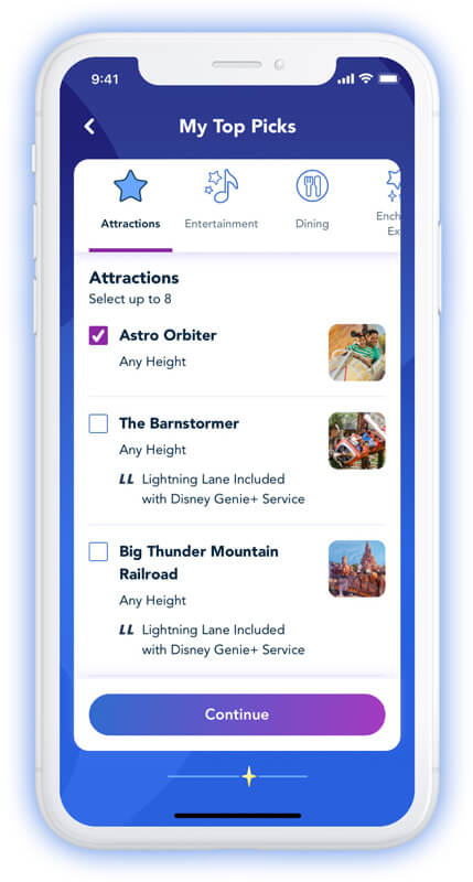 Disney Genie will ask you to answer a few questions about your favorite attractions and park experiences. It’ll also check whether you want to Park Hop and other stuff.