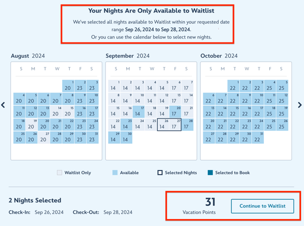 In such scenarios, you’ll feel stress when the seven-month window opens. That’s the moment you can attempt to book your new preferred resort. Alas, it’s also the time when you’re most likely to need a Waitlist.