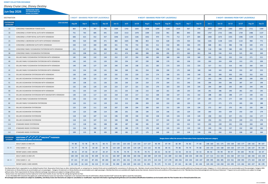 We’re traveling on September 14th – if you’re on that cruise, feel free to say hi – and so that’s the applicable Points Chart. Here are the standard DVC Points required for our Cabins:
