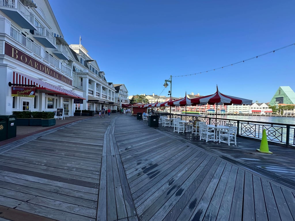 Another part of Beach Club’s excellent logistics is that it’s right across the water from the Boardwalk, an outstanding hangout area. This entertainment district features several noteworthy restaurants, such as The Cake Bake Shop. Personally, I prefer the live performances, though. You’ll find everything from dance troupes to acrobats to musicians. There’s never a charge for any of these performances, but tipping is encouraged in some instances. It’s free entertainment right across the bridge from Beach Club.