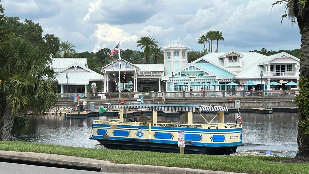 Alternatively, you can take a boat from either resort to the Marketplace side of Disney Springs. When staying at Saratoga Springs, you can take a walking path from the Congress Park section to Disney Springs. The path is behind the Congress Park bus stop.