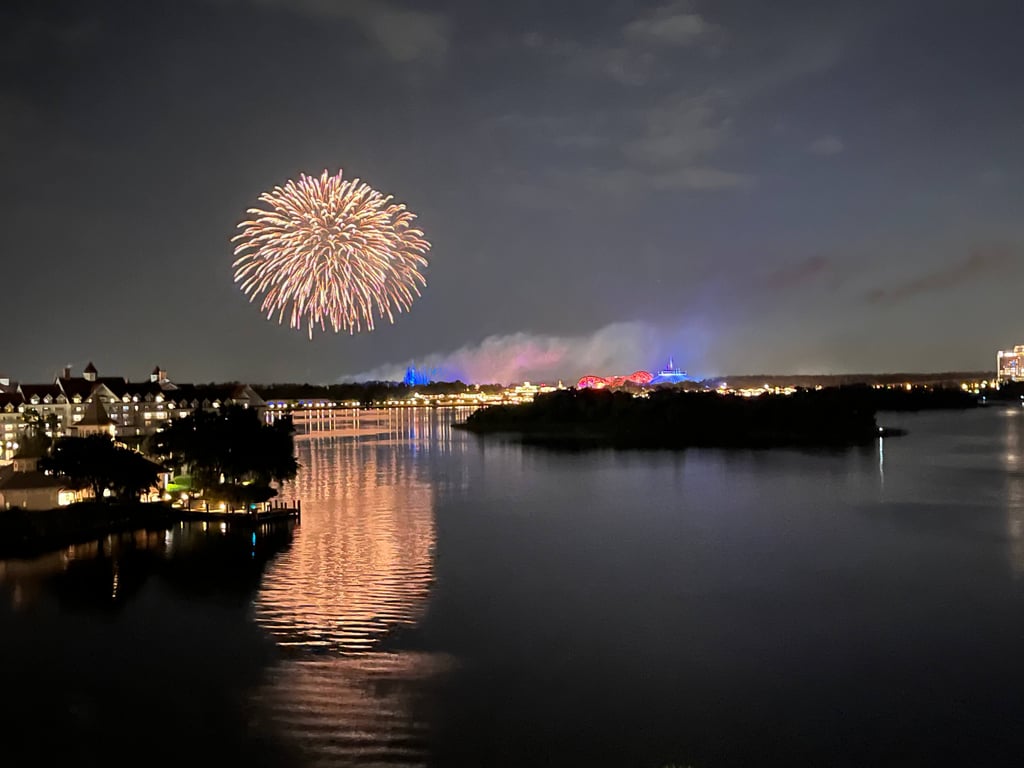The Polynesian Island Tower has several great spots for viewing fireworks. There’s the Bamboo Terrace Garden on the third floor, the Wave Break Terrace on the fifth floor, Wailulu Bar & Grill, the beach, and the Cove Pool plus the seating by the entrance to the Island Tower. Not only are these places less crowded than the viewing areas in the Magic Kingdom, but they are also not as loud since you are further away from the fireworks themselves, which can be helpful if your little one is scared of loud noises.