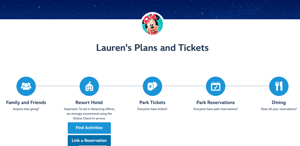To do this, you’ll log into My Disney Experience and go to My Plans. From there, hover over Resort Hotel, and click on Link a Reservation. You can then input your reservation number and last name. Then confirm the accounts for any of the guests you have on your resort reservation. While this is an extra step, it’s an easy process.
